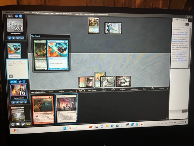 My deck drew as well as I could’ve hoped after a mull to 5…OP cast Counterspell 3 turns in a row to run me out of threats. Ouch. There’s no accounting for variance, but what a way to lose.