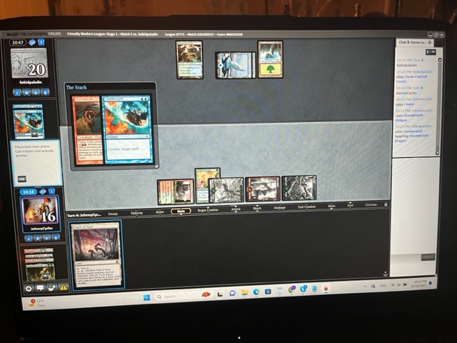 Game 1 – Kept a land-heavy hand with some ramp, then drew really well. Know who doesn’t care about Sheoldred, the Apocalypse? Stormbreath Dragon baby!