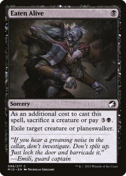 Still, there were a few games when I drew four or five copies of these cards with no creature to sacrifice. Brutal. Four total copies is where I settled, though I think going to five may be worthwhile. We need cheap/free sac outlets and a way to keep our hand full of action (or lands, as the case may be), and these instants are great at doing this.