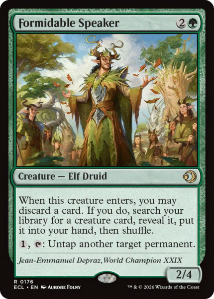 Formidable Speaker is a powerful new tutor for Green that can also do a bunch of busted things with it’s untap ability.